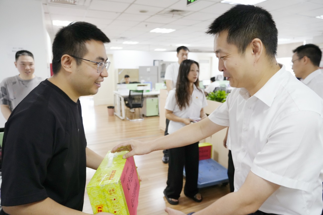 7月25日,川投信產(chǎn)黨委副書記、總經(jīng)理梁濤,黨委副書記、職工董事、工會主席閆誠一行赴所屬川投數(shù)科(原簡稱:智勝集成)公司督導檢查安全工作,并開展“送清涼”慰問活動。