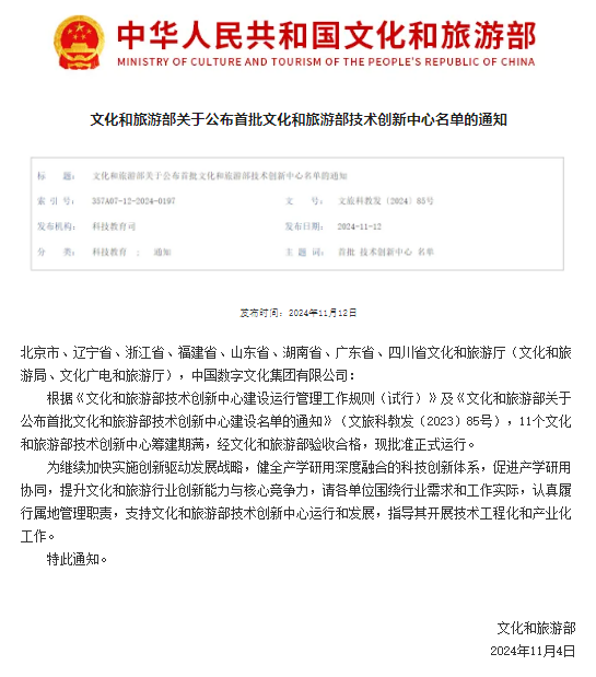 文化和旅游部技術創(chuàng)新中心