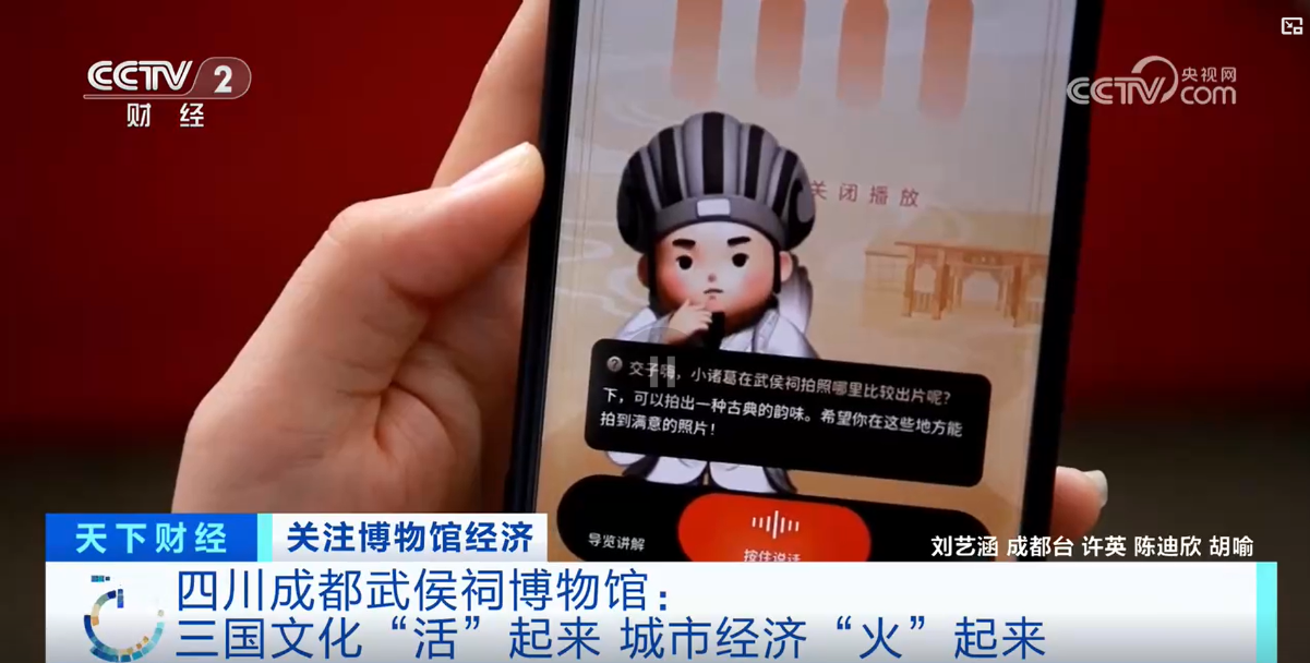 作為武侯祠博物館的首個時空伴游數(shù)智人,“小諸葛”可謂“火爆出圈”。在國際博物館日當天,央視財經(jīng)頻道《天下財經(jīng)》以“四川成都武侯祠博物館:三國文化‘活’起來 城市經(jīng)濟‘火’起來”為題,重磅報道了武侯祠博物館的數(shù)智經(jīng)濟、AI技術(shù),展現(xiàn)文博領域的生機與活力。