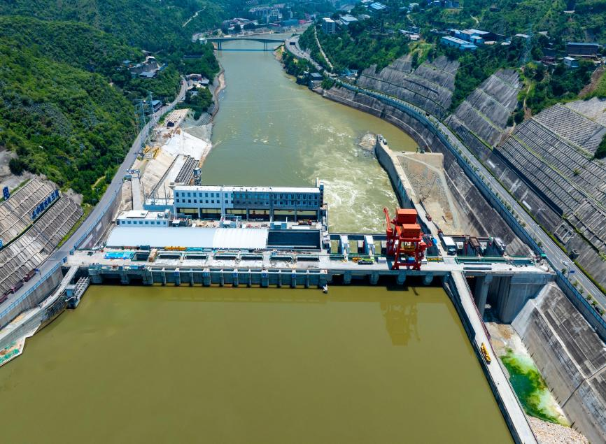 項目裝機39萬千瓦,最大壩高73米,總投資60.27億元。目前大壩廠房工程全線澆筑到頂,1~3號機組已投產(chǎn)發(fā)電,攔污柵、進(jìn)口檢修門、尾水事故檢修門已完成安裝,1~6號弧形工作門已完成安裝,正在推進(jìn)4號機組無水調(diào)試以及7號弧形工作門安裝工作。