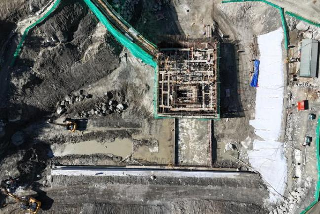 項目總裝機容量為13.5萬千瓦,主要建筑由首部樞紐、引水系統(tǒng)和廠區(qū)樞紐組成,總投資22.61億元。目前首部樞紐過河涵管回填砼及縱向砼圍堰澆筑完成,廠區(qū)樞紐覆蓋層鋼管樁施工完成,引水系統(tǒng)支洞貫通,正在進行引水系統(tǒng)壓力管道上平段開挖。